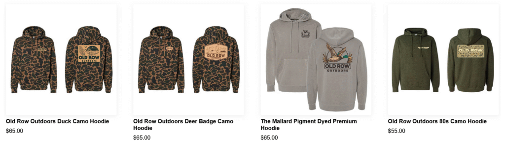 The Outdoors collection highlights the brand’s versatility. It shifts focus from the social scene to the rugged landscape, offering high-quality gear for hunting, fishing, and camping. The designs—featuring detailed deer badges, vintage camo patterns, and nature-inspired colors—are not just for show; they offer comfortable, durable clothing built for the elements. This collection expands the brand’s reach beyond the college quad to the rural hunter and the weekend adventurer, providing practical gear that maintains the signature Old Row aesthetic.